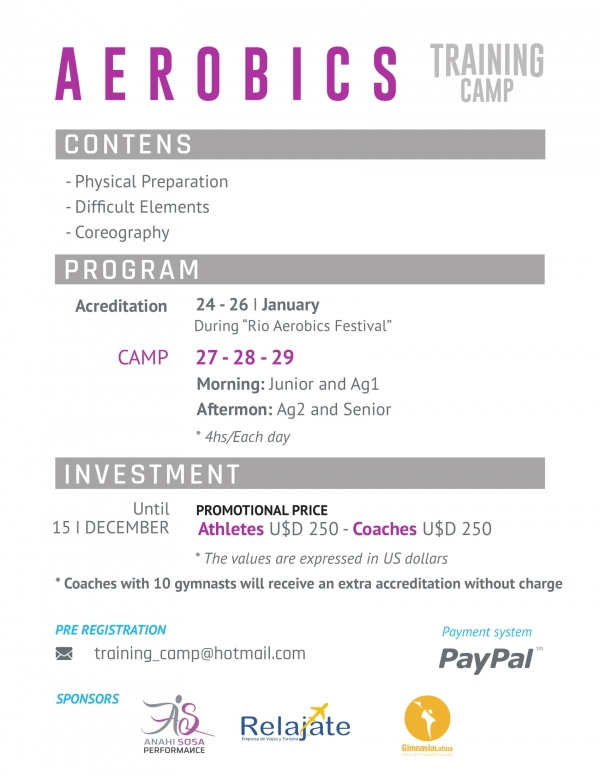 Aerobics Training Camp Silvana Conte2026-02-11T10:44:12-03:00 View Larger Image Informações sobre o evento. CONVITE E PROGRAMAÇÃO – TRAINING CAMP GINÁSTICA AERÓBICA (2) InscriçãoPagamento Depósito, Boleto ou Pay Pal Gostou? Compartilhe! FacebookXLinkedInWhatsAppEmail Related Posts Slovak Aerobic Open: tradizione e crescita per la ginnastica aerobica europea 10/04/2026 18:39 | 0 Comments Slovak Aerobic Open: tradícia a rast európskej aerobikovej gymnastiky 10/04/2026 18:38 | 0 Comments Slovak Aerobic Open: tradition and growth of European aerobic gymnastics 10/04/2026 17:27 | 0 Comments Campo di Addestramento in Argentina 04/02/2026 12:04 | 0 Comments Campo de Entrenamiento en Argentina 04/02/2026 12:01 | 0 Comments Campo de Treinamento na Argentina 04/02/2026 11:59 | 0 Comments Leave A Comment Cancelar respostaYou must be logged in to post a comment.