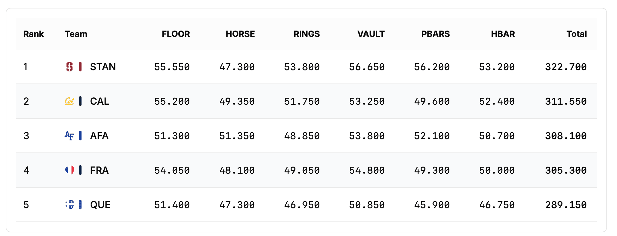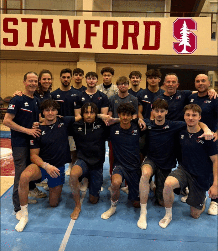 C’était une grande première. Les douze gymnastes français en stage à Stanford depuis le 3 mars dernier ont participé à un match NCAA samedi soir, face à Stanford, l’université hôte, Air Force, California et Québec.